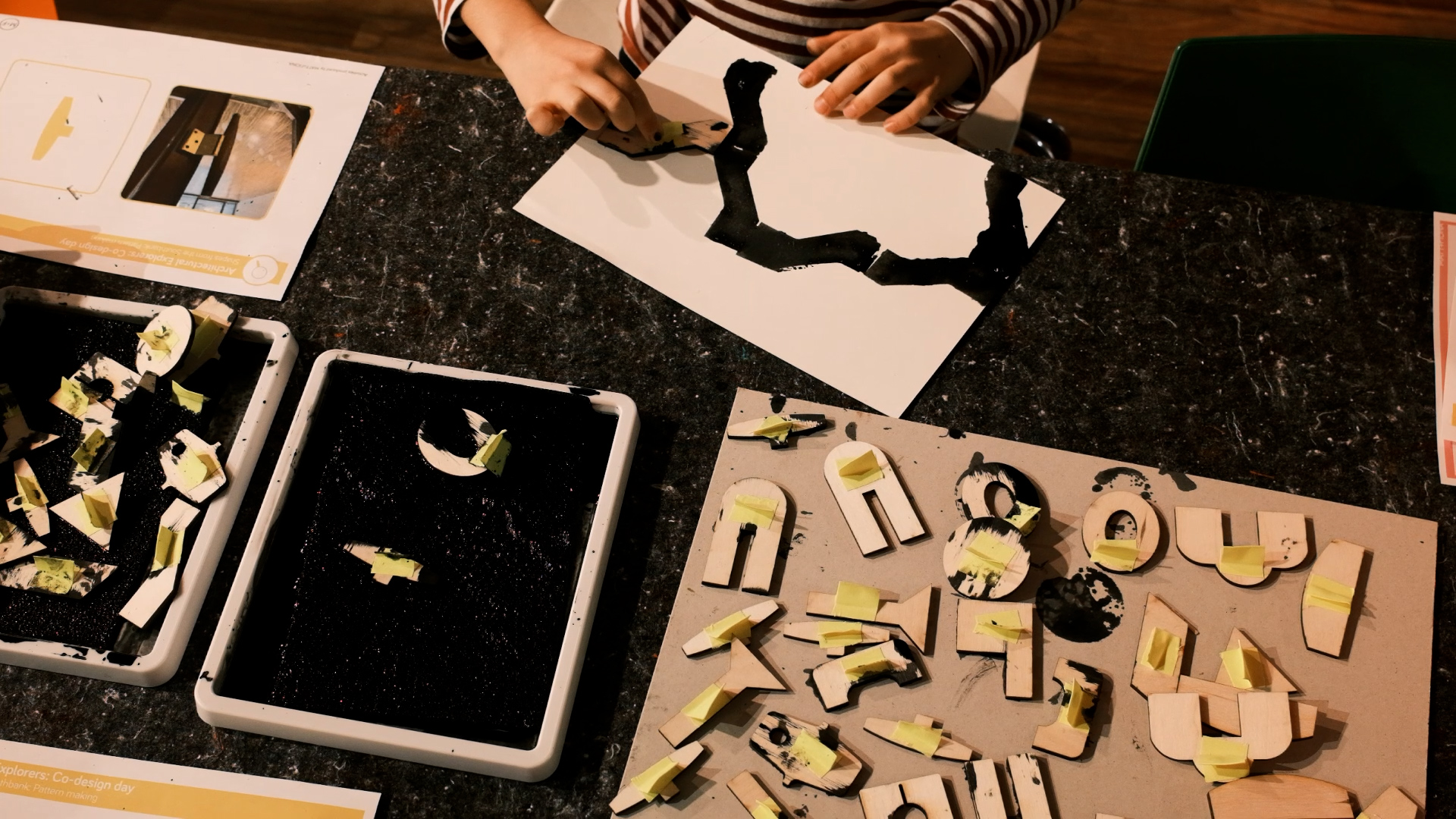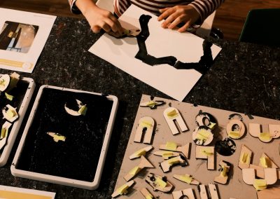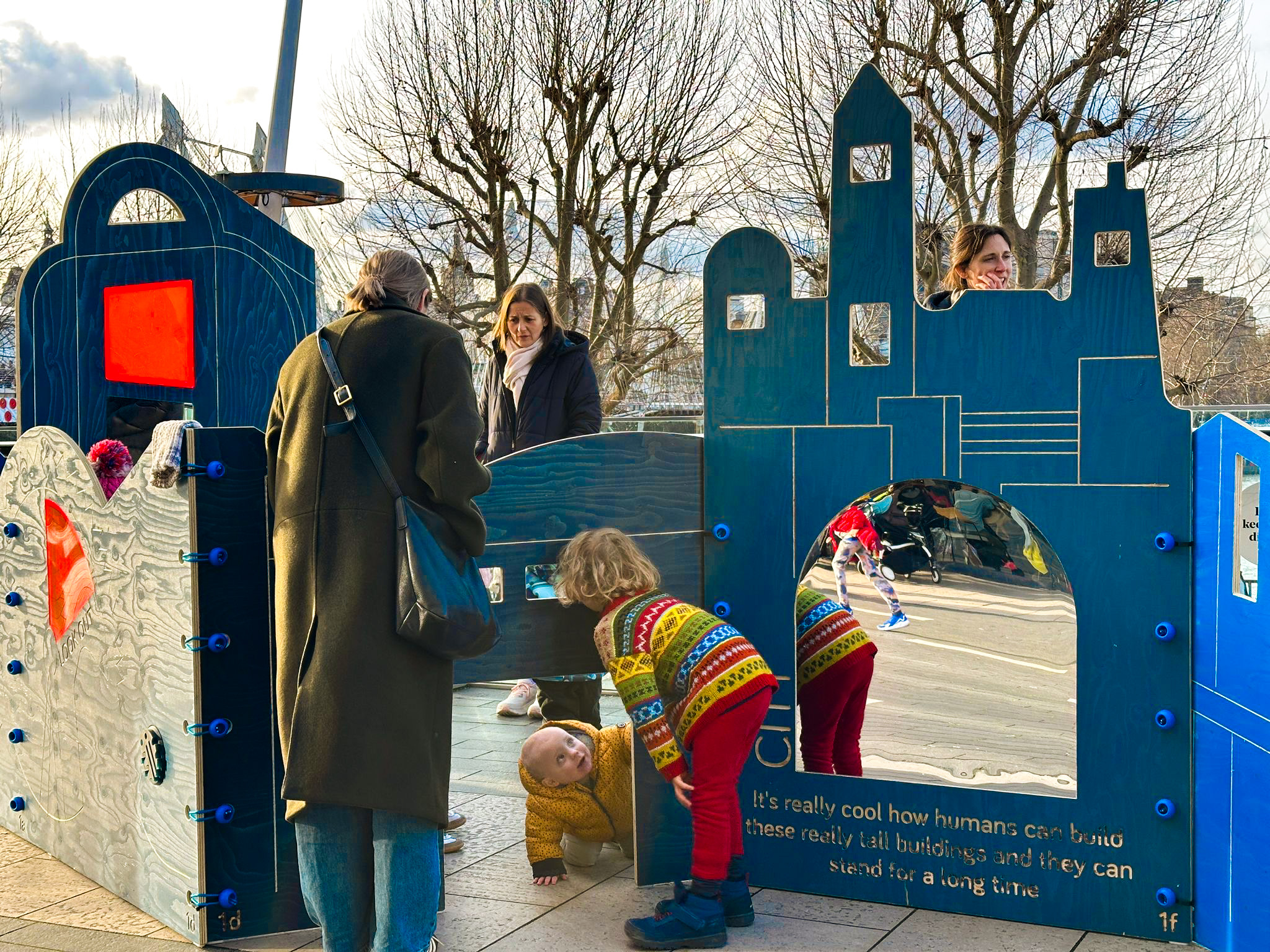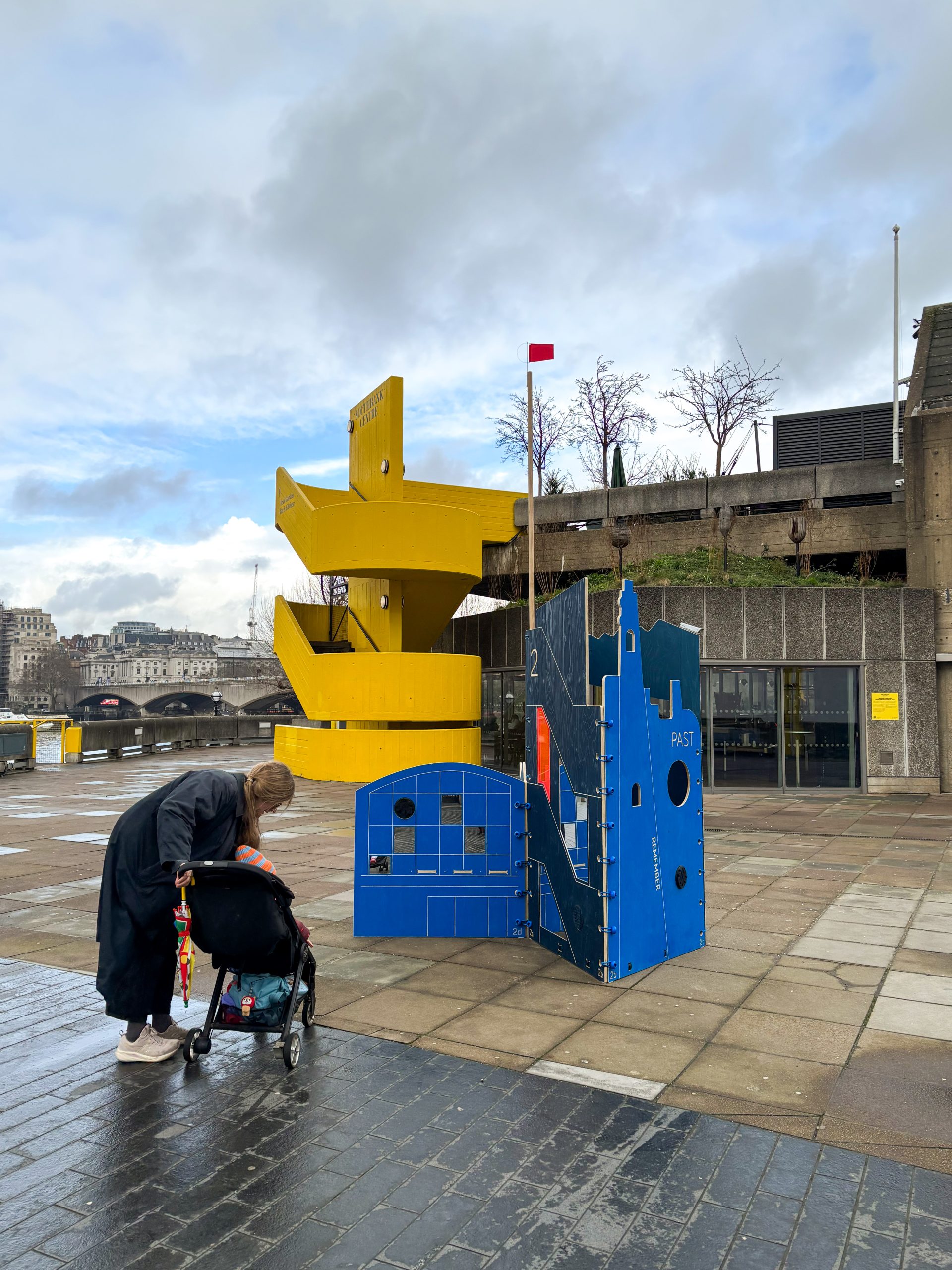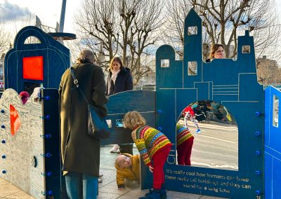 The trail was co-designed with young people and families visiting the Southbank Centre. They dug into the Southbank Centre’s Festival of Britain archive taking inspiration of silhouettes, patterns and shapes for the trail. Through a series of creative workshops including print making and 3D collaging, the families created tiles for one of the structures, and co-designed the fabric and forms for the pop-up play pavilions.